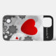 Design adorável para a divertida amante com um grande coração. Este gráfico bonito apresenta um grande coração vermelho, com alguns menores, e um campo de flores em preto e branco em tons de cinza desenhado. Mostre ao seu amado o quanto você se importa com esse design de amor no dia de os namorados, aniversário ou qualquer dia! Este design está disponível como uma coleção completa que inclui roupa, material, acessórios, presentes exclusivos e muito mais!