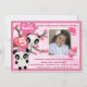 Este convite de aniversário adorável da panda em máscaras cor-de-rosa é perfeito para seu amante da panda pequena.