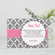 Imprima seus convidados com estes cartões de agradecimentos cor-de-rosa e pretos bonitos do damasco. Personalize-o com seus detalhes para todo o evento.
