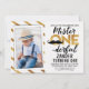 Procurando um convite de aniversário do Sr. OneGreat? Essa design pode ser a certa para você. Ele apresenta algumas fontes escritas manualmente, algumas com textura falsa de ouro e um bigode. A foto do seu garotinho aparece no lado direito do convite. Mais designs nesse tema estão disponíveis na loja. O convite do Sr. Um primeiro aniversario maravilhoso deste rapaz está pronto para ser personalizado.