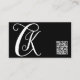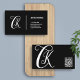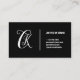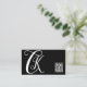 Este modelo de cartão de negócios editável é perfeito para qualquer negócio que queira transmitir um senso de sofisticação e elegância. Tem um fundo negro, um design minimalista, grandes letras caligráficas que se adequam a qualquer indústria ou nicho. Ele também tem um código QR que conecta seus contatos ao seu site ou portfólio.