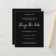 Economize dinheiro em convites formais com este convite menor que tem uma opção para envelopes. Altere a data do seu casamento com este Convite Preto e Branco. Versão pequena. Quer uma versão maior? Verifique a coleção Alterar Data/Planos para cartões. https://www.zazzle.com/collections/change_cancel_delay_wedding_announcements-119305647416996151?rf=238937196885903396