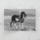Este garanhão preto e branco chamado Washakie se aproxima em um momento tranquilo na área de McCullough Peaks Herd em Wyoming. Há outra imagem deste garanhão dentro na placa. Ambas as imagens são de Carol Walker.