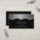 O preto e o metal olham cartões de visitas com texto branco na parte dianteira e na parte traseira.