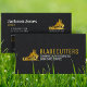 estas modernas cartões de visitas estéticas minimalistas de luxo têm certamente uma impressão duradoura. apresentam um gráfico personalizado de cuidados de grama/paisagens, em uma folha de ouro metálica simulada, posicionada sobre estoque de cartolina preto, com sans alternados e tipografia de serifa em ouro, branco e cinzas legal de prata de platina.