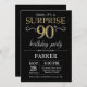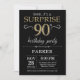 Convite do aniversário do 90 da surpresa com preto e fundo Dourado do brilho. Quadro. Aniversário adulto. Os homens ou as mulheres Bday convidam. Alguma idade. Para uma personalização mais adicional, clique por favor "personalizam-no" botão e usam-nos nossa ferramenta de design para alterar este modelo.