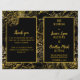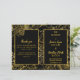 Design do programa de casamento botânico, de duas faces, romântico, com folhas negras e douradas, que apresenta flores para olhar. A design é repetida atrás. Este design floral de Designs Holiday Hearts (direitos reservados), incorporando imagens vintage, está pronto para você personalizar com seus detalhes de casamento.