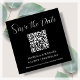 Imã salve a data mínima personalizável em preto e branco. Convide seus convidados para ver seu site de casamento com o código QR mostrado neste design. Gerar seu próprio código QR exclusivo que liga seus convidados ao seu site de casamento, usando as instruções fáceis de seguir através de "personalizar este modelo".