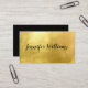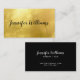 Este cartão de visita moderno apresenta um fundo de folha de ouro FAUX chic e o seu nome ou nome de empresa na frente em um roteiro de caligrafia. No verso está um simples fundo negro com a tipografia moderna no verso. Ele tem uma aparência moderna e moderna e faria uma primeira impressão fabulosa para o seu negócio em crescimento. Adicione cantos arredondados para um elemento design exclusivo!