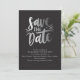 Preto Moderno Salvar a Data Convite É um texto personalizado salvar o convite de casamento da data. Você pode personalizar todo o texto neste convite. Este tema sombrio, bonito e único, Escuro, salve a data em que o convite de casamento vem com um envelope branco. Ela é escrita em cinzas simples e elegantes e se você quiser personalizá-la mais simplesmente pressione o botão personalizá-la. Dimensão: Envelopes de 5" x 7": Branco Personalizável: Sim, Crie o seu. —A Perfeição—