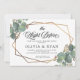 Este é um belo produto com tipografia na noite anterior para ensaiar design de convite jante a preto com eucalipto e estrutura geométrica de ouro