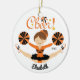 Ornamento triguenho bonito do cheerleader do elogio preto & alaranjado. Fácil personalizar com seus nome & data. Visite nossa loja para ver este ornamento em uma grande variedade de cores da escola & de cores do cabelo