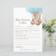 Previsão Editável de Bebês e Cartão de Chá de fraldas de Aconselhamento Impresso Chá de fraldas de Urso Azul, Urso Azul, Chá de fraldas De Urso Teddy, Bebê Garoto Teddy,