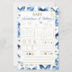 Faça memórias que duram com este jogo de "Previsão de Bebê e Conselho"! Os convidados adivinham os detalhes da chegada do bebê e partilham os conselhos sinceros dos futuros pais. Adorado com borboletas azuis graciosas e ouro brilhante, é elegante e significativo. Se você adorar este tema, mas precisar dele em outro item, apenas nos envie uma mensagem - nós o design com prazer! Que seu dia esteja cheio de alegria e momentos bonitos. Calorosamente, Estúdio de Saudações 💙 🦋 ✨