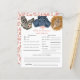 O tema safari bonito, previsões de bebês chás de fraldas e cartão de aconselhamento para meninas, com ilustrações de animais (girafa, rinoceronte e leopardo) com flor, coroa e chapéu de festa. Os textos são editáveis. Um jogo perfeito para jogar durante o chá e definitivamente será um excelente! O cartão aos hóspedes para predizer como o bebê se pareceria.