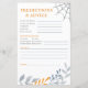 Predições e Folha de Conselhos para o seu chá de fraldas de halloween, Este design de outono varreu a folhagem e a teia de outono numa paleta colorida de laranja, cinza e azul de tempestade. Os itens de coordenação podem ser encontrados na minha loja, na coleção do Pequeno Boo Halloween.