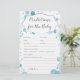 Este cartão de chá de fraldas apresenta um roteiro moderno sobre o fundo dos pontos azuis do bebê, perfeito para uma festa de chá do bebê! Para jogos e cartões mais engraçados e exclusivos, por favor, verifique a coleção abaixo.