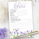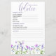 Predições e lençóis de conselhos para se adequarem ao chá de fraldas de flor silvestre, à menina ou ao tema floral de verão. Atividade divertida para envolver convidados no seu chá de fraldas, com palavras de sabedoria para os pais serem. A delicada e feminina design botânica é escrita à mão com "conselhos" na caligrafia elegante. Tem uma bonito borda de flores silvestres aquáticas em tons de lilac, lavanda, roxo, rosa e azul. Uma floral moderna e delicada com tema de jardim de casacos boêmicos. Por favor, veja a minha coleção de Flores Roxas para ver os itens correspondentes ou, envie-me uma mensagem para criar os modelos de que necessita.