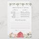 Os animais de exploração têm o tema predições de chá de fraldas e cartão de jogo de aconselhamento, com ilustração de animais de exploração aquícola e uma fonte elegante e escrita à mão.