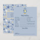 Peça aos seus convidados de chá de fraldas que encham as suas previsões de bebês bonitinhos e cartão de aconselhamento que apresenta uma ilustração desenhada pela mão, um pinguim bebê segurando uma estrela amarela. Este adorável cartão de conselho temático de pinguim de inverno faz uma maravilhosa manutenção e é uma atividade divertida para seu chá de fraldas de pinguim ártico! A parte traseira desta placa apresenta um padrão estelar texturizado, azul e amarelo, pintado manualmente, que é divertido e caprichoso.