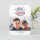 Estilo retrorreflector bonito e moderno, ousado e colorido "Dear Papais noeis Define Bom", cartão com fotos de feriado. Recursos da placa, foto do solteiro na frente com três linhas de texto do modelo para mensagem, nome e ano. A parte traseira da placa é complementada com um padrão desenhado branco no fundo azul da cinza.