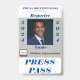 Pressione Pass Vertical Plastic Crachá, não que você precise de uma introdução, mas se você fez, esses crachás são eles. Perfeito para eventos especiais, reuniões e apresentações. Personalize este Pressione Pass com suas imagens e texto. Pressione as medidas Pass 2,13 polegadas x 3,38 polegadas, é feita de plástico de PVC, é durável e não desaparece nem rasga.