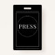 Modelo metálico e Crachá de Eventos de Impressão Preto. Substitua pelo nome e data do evento. Esta versão vem com um pátio, mas você pode escolher seu estilo de fixação que inclui, jardim, clipe de metal ou retrátil, ou nenhum anexo.
