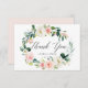 Cartões de agradecimentos Elegante de Casamento, com uma coroa de flores de aquarela, cor-de-rosa-pincelada e branca, com folhagem verde. Para personalização mais avançada deste design, clique no botão "Personalizar". Itens correspondentes também estão disponíveis.