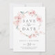 Esta flor de primavera cereja salve o cartão de data é perfeito para um casamento moderno. O design floral oriental apresenta um galho de árvore cor-de-água cor-de-rosa, branco e branco, e folhas verdes com estilo japonês elegante.