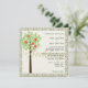 Convites de casamento de noiva e noiva. Melhor para casamentos de primavera e verão. Árvore de maçã em fundo verde claro, com borda decorativa.
