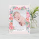 Lave a borda floral tropical rosa quente com sotaque dourado para o anúncio de nascimento do seu bebê. Você pode escolher entre três formações diferentes.