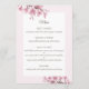 Menu com flores cor-de-água rosa de cereja floridas são perfeitos para o casamento romântico da primavera. Este modelo está configurado e pronto para você sobrescrever com todos os seus próprios detalhes.
