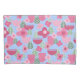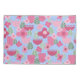 Essa pasta tem um design escandinavo de flores e folhas em vários tons de rosa e verde em um campo azul.
