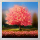 Árvore rosa na floresta com um campo rosa de flores perto. Criado com o uso do software AI.