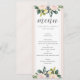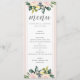 [Parte da nossa coleção de convites para casamentos de Blush Floral Primavera. ] Cartão de menu romântico, moderno e elegante com script de caligrafia e florais de aquarelas.