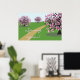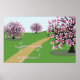 Linda imagem primavera de árvores floridas, em um poster de arte vetorial decorativo.