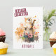 Um cartão de aniversário bonito, com um gato florescente celebrando o primavera na frente com "Parabéns" em uma fonte branca e boné em negrito. Personalize a frente adicionando seus nomes. A parte traseira da placa apresenta espaço para sua mensagem digitada ou manuscrita.