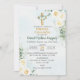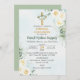 Torne a Primeira Comunhão do seu filho especial com este belo e elegante convite. Adorada com flores brancas e uma cruz, captura a essência de uma cerimônia religiosa católica. Haz que la Primera Comunión de tu hijo sea especial con esta linda y elegante invitación. Adornada con Flancas y una cruz, captura la esencia de una ceremonia religiosa católica.