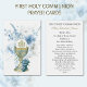 Personalize o nosso lindo e tradicional Cartão de Memória da Primeira Comunhão Católica com uma monstrância de ouro e Santo Eucarista acentuado com flores azuis-claras. A bela oração à Anima Christi católica está nas costas. Todo texto e fontes podem ser modificados.