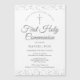 Um elegante convite de save the date de Primeira Comunhão com delicado brilho prateado. Você pode personalizar com os detalhes da sua celebração especial em texto prateado chique. Criado por Thisisnotme©