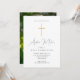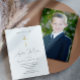 Simples convite religioso da Santa Comunhão apresenta um roteiro clássico de caligrafia e uma simples cruz de cor dourada com uma foto de cheio.