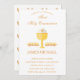 O Elegante White First Holy Communion Invitation apresenta um cálice, trigo e hospedeiro - símbolos do Eucharist. As palavras "Primeira Comunhão Sagrada" são escritas em uma elegante fonte de script de cor de ouro. O texto e a cor do plano de fundo podem ser personalizados de acordo com o seu gosto. Uma maneira perfeita de convidar convidados para a ocasião religiosa especial do seu filho. O nome pode ser mudado para usar o cartão para a comunhão de meninas.