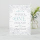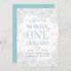 Brrr! Convites chiques para os primeiros aniversários contêm uma fronteira de flocos de neve de cinzas pálidas e geladas com a "onderland de inverno" em turquesa branca e cartazes de cinza. Personalize com os detalhes da sua primeira festa de aniversário embaixo.