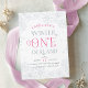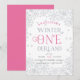 Brrr! Convites chiques para o primeiro aniversário, gelados, apresentam uma fronteira de flocos de neve de cinzas pálidas e geladas com "sertão de inverno" em cor-de-rosa e cinza branca. Personalize com os detalhes da primeira festa de aniversário da sua filha.