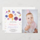 Celebre a sua primeira viagem ao redor do sol com a nossa adorável Primeira Viagem ao redor do Sun Aniversário! Apresentando um design com temas espaciais divertidos e uma área de fotos personalizável, este convite é perfeito para criar memórias de primeiro aniversário fora do mundo.