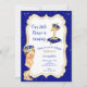 Primeiro convite de aniversário com um pequeno príncipe em tênis de ouro tema em azul real e ouro.