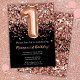 convite de festas de primeiro aniversario preto Rosa negro Dourado brilhante Elegante preto e rosa de ouro para uma menina de 1 ano com roteiro moderno e balões de folha divertida.
