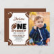 Apresentando o encantador convite para primeiro aniversario de Foto para o Orçamento Moderno de Futebol! Este encantador convite combina o amor pelo futebol americano com uma vibração contemporânea e divertida. Sua cor castanha e ilustração adorável de um jogador de futebol novato instantaneamente cativante. A tipografia, com uma mistura de fontes divertidas e uma foto personalizada do seu bebê, adiciona um elemento de diversão e entusiasmo. Ideal para pais que amam o esporte e aspiram seus filhos a serem todos jogadores de estrelas, este convite expele um apelo moderno e bonito, criando uma celebração de aniversário inesquecível e alegre centrada no seu esporte favorito. Prepare-se para um cheio de riso e alegria com tema desportivo! Não perca essa design de tema de futebol americano para começar os planos de primeira festa de aniversário do seu novato sem apertar o bolso.