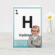 Fora: "O hidrogênio é o primeiro e mais abundante de todos os 118 elementos da mesa periódica." Dentro: "Feliz Aniversário do Hidrogênio - Você é o número 1!"