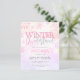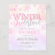 Um orçamento moderno e elegante para o primeiro convite de aniversário para as raparigas! Apresentando a aquarela Flocos de neve de inverno, brilhos cor-de-rosa e nuvens de matizes cor-de-rosa com uma combinação de serif e escrita para os detalhes do aniversário.